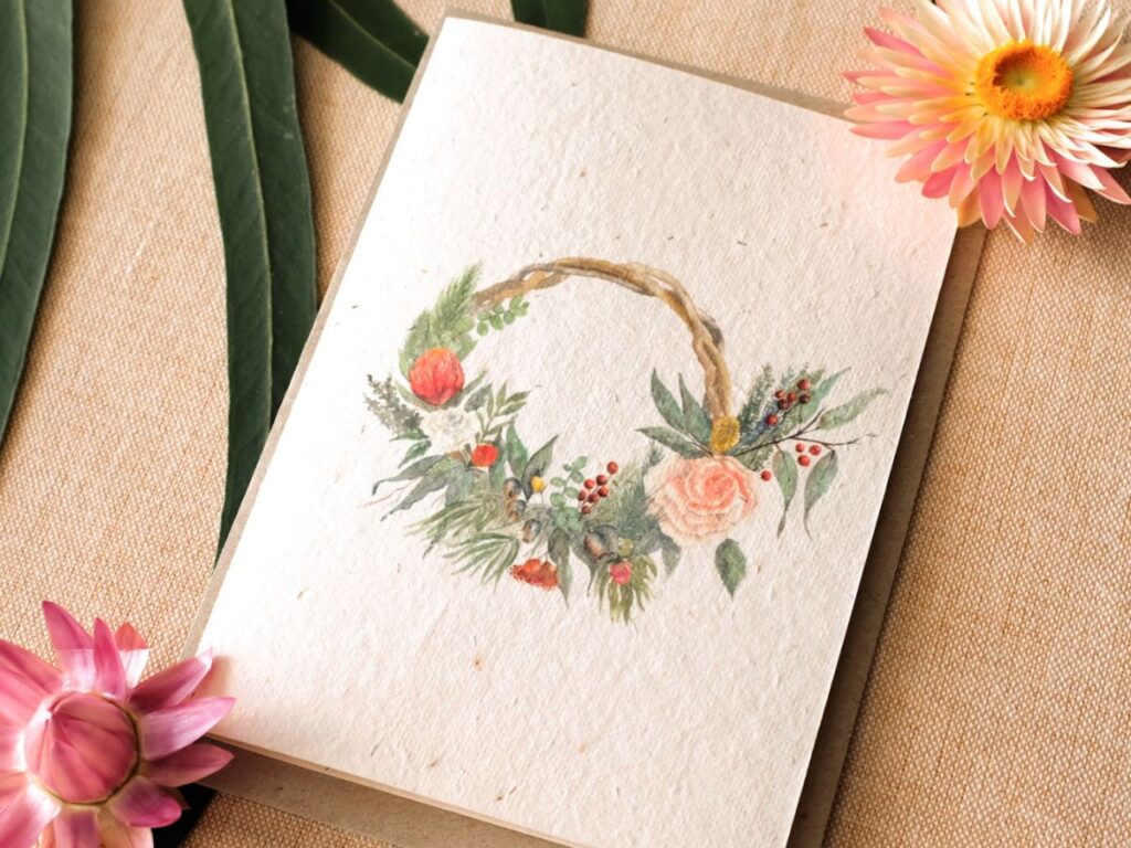 Recently I was inspired by my sister who is an avid gardener and works in the industry to create a Christmas gift card that doesn’t go to waste – literally! These Christmas wreath cards were painted by myself, then printed onto environmentally friendly seed card.